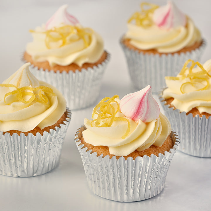 Fitzbillies zesty lemon cake comes in a postable form! It has two layers of moist lemon cake filled with lemon curd and lemon buttercream, and is decorated with crusted merengue and lemon zest.
